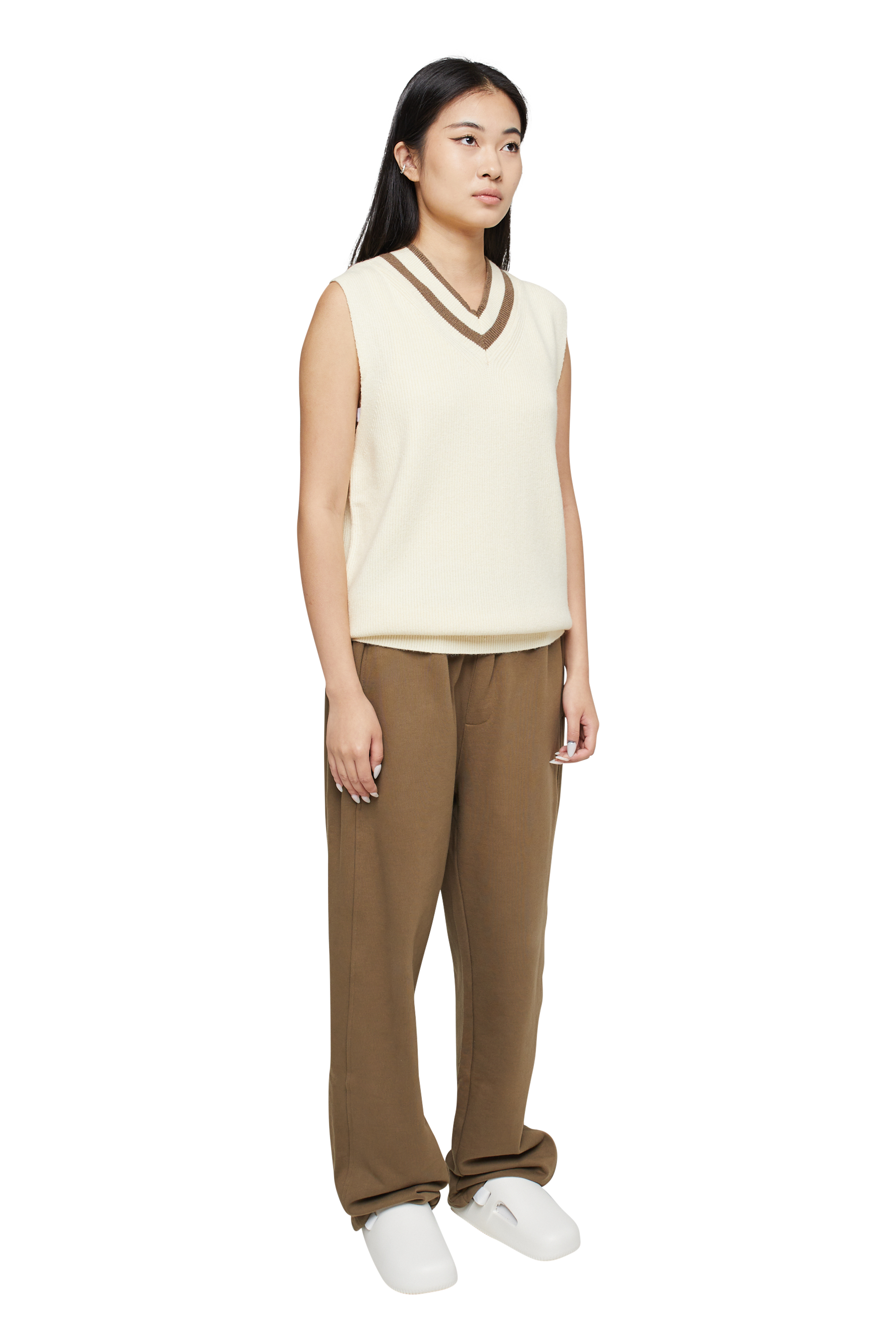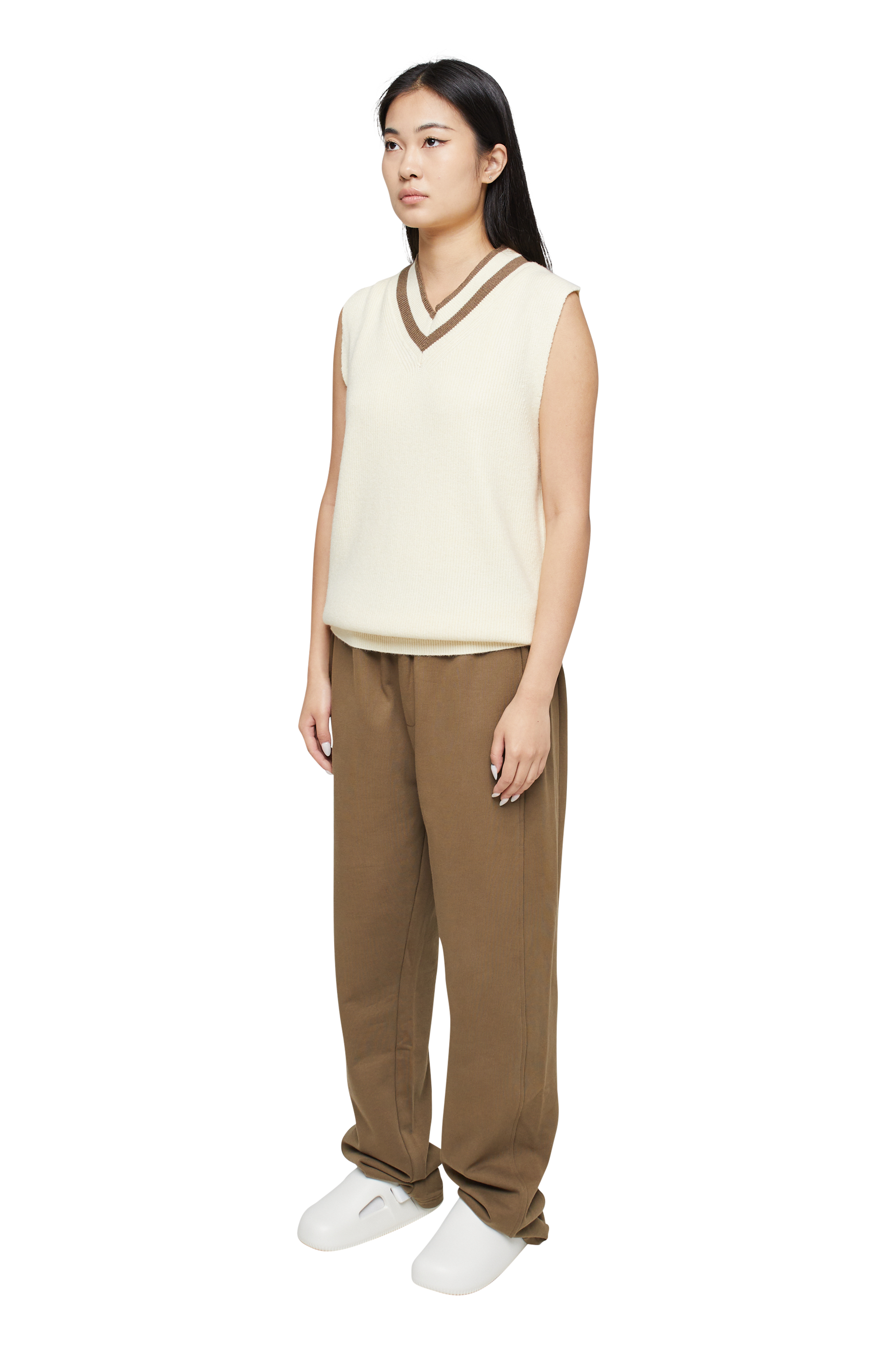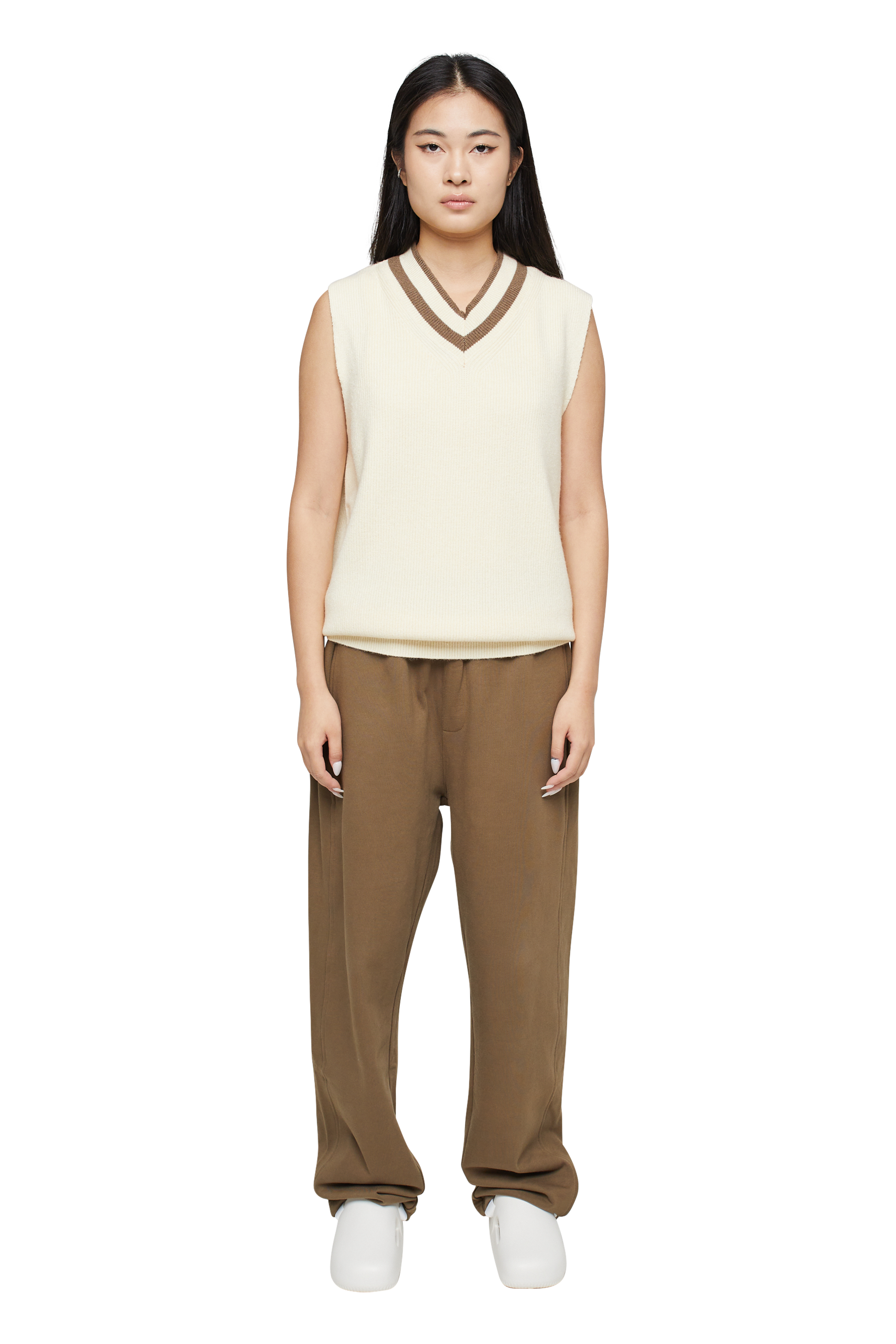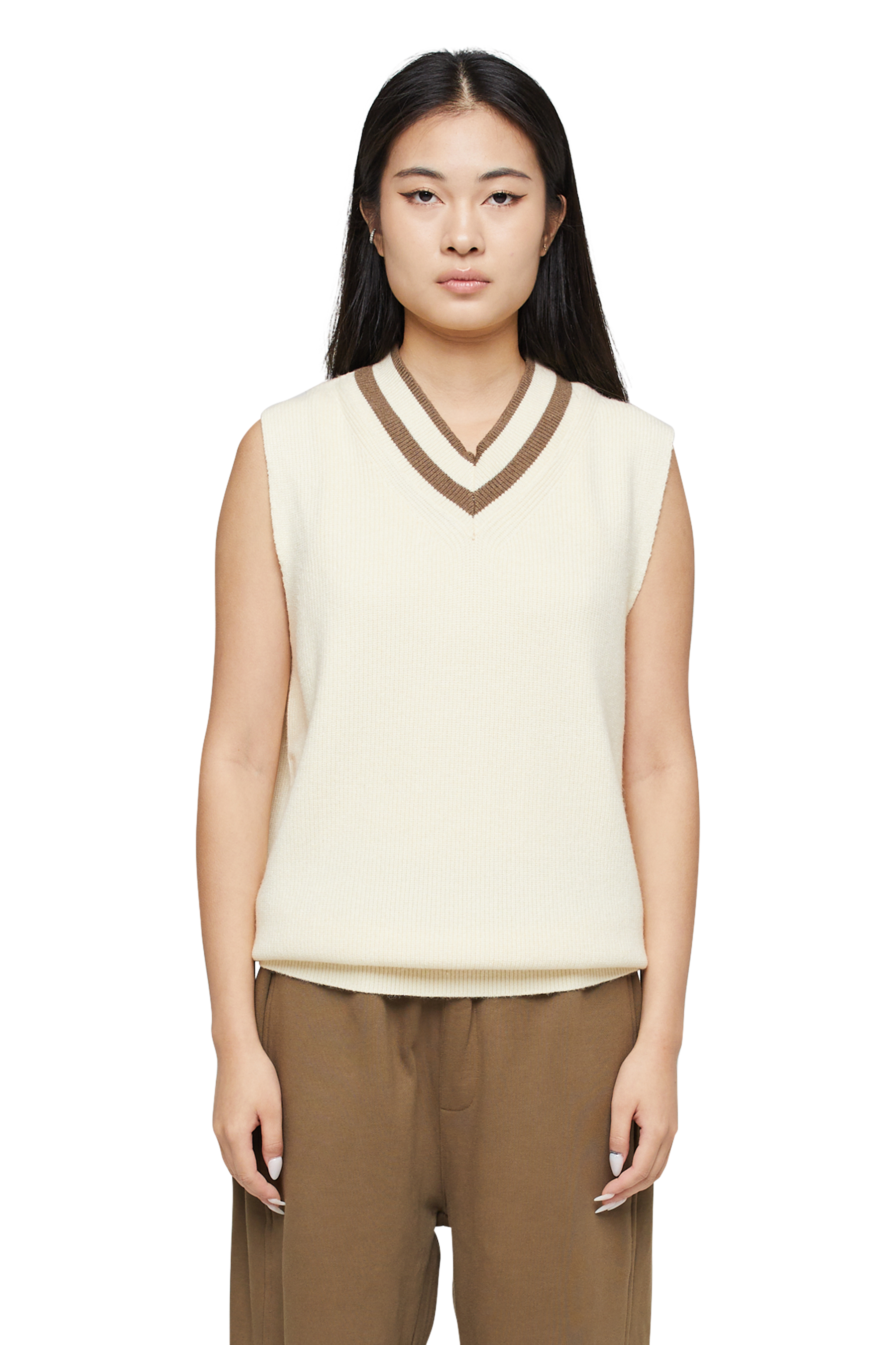 The Adora V Neck, our lightweight sweater perfect for the warmer days, bespoke knitted construction and tonal v-neck details throughout.